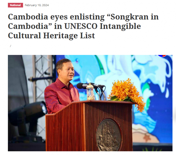 Cambodian Prime Minister Hun Manet stated that in the future, Cambodia also has the right to request the inscription of “Songkran in Cambodia” in the UNESCO Intangible Cultural Heritage of Humanity list.