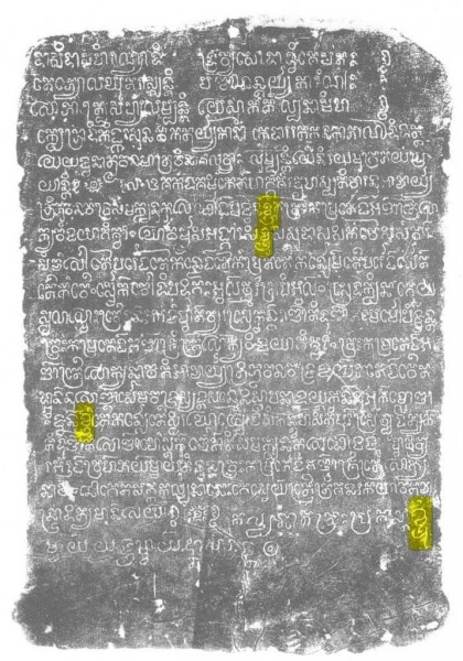 Synopsis: These 47 lines in Khmer record the names of some 431 slaves. The slavelists are distinguished by contrasting Khmer slaves (351 names) with those from Maleṅ (157 names). Face A registers 214 slaves (137 Khmer, 77 Maleṅ); face B registers 217 slaves (137 Khmer in four teams, 80 Maleṅ). On face A neither donor nor recipient is named, but additional gifts of cattle, palms, and riceland are mentioned; on face B the donors are identified as mratāñ kamratāṅ craṅ gos, while the slaves are given to an unnamed vihāra.‼️