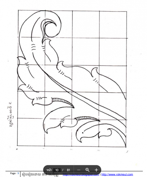 เป็นไฟล์เอกสารการเรียนศิลปะของกัมพูชาในสมัยก่อนมีคำอธิบายว่า kbach khmer ebook อันนี้เป็นของ Mr. Phat Sereyvuth ในตอนที่เค้าเรียนอยู่ตอนเกรด 10 คำนำใน ebook ลงเวลาไว้ว่าเป็นปี 2011 หรือพ.ศ.2554 ในขณะนั้นตัวคนทำก็ไม่รู้อายุเท่าไหร่แล้วเลยกะไม่ได้ว่าเอกสารการเรียนนี้เป็นของปีไหนแต่ที่แน่ๆ ก็น่าจะเก่ากว่าปี 2011 แน่ แต่ผมก็ไม่ค่อยรู้เรื่องลายไทยเท่าไหร่เลยไม่รู้ว่าลายที่เห็นเป็นลายไทยหรือเปล่า