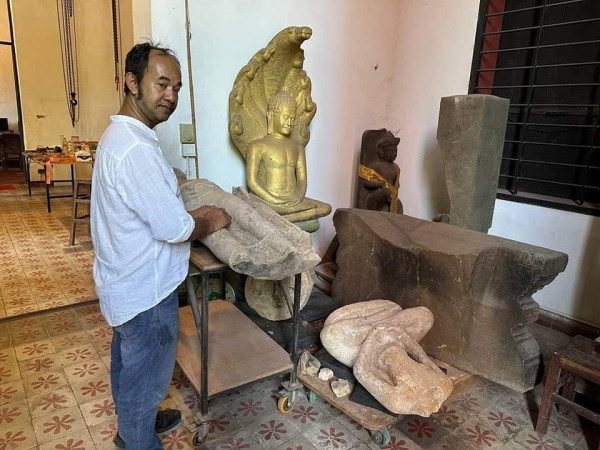 #Two antiquities found by people living in Phumit Tnot village, Sronge commune, Trang district, Takeo province have been brought to Phnom Penh National Museum on January 4, 2020.