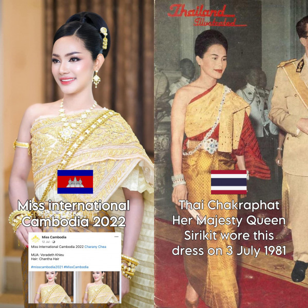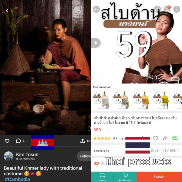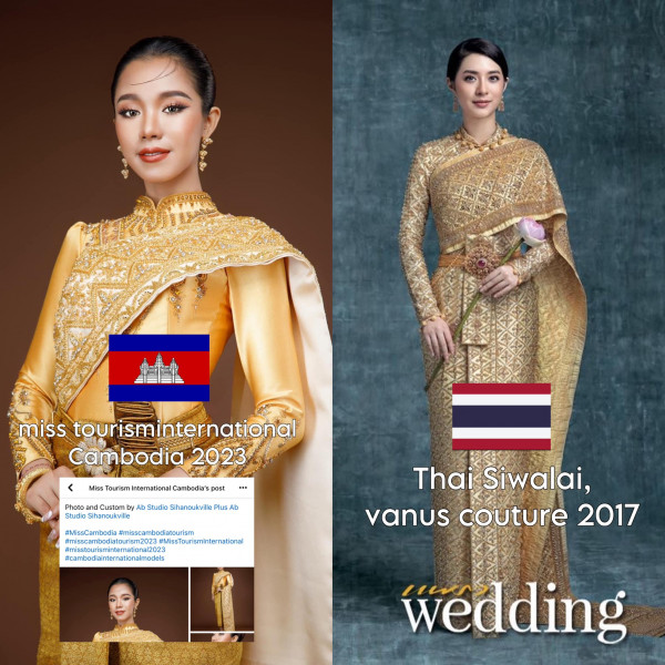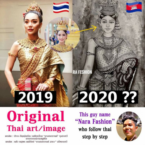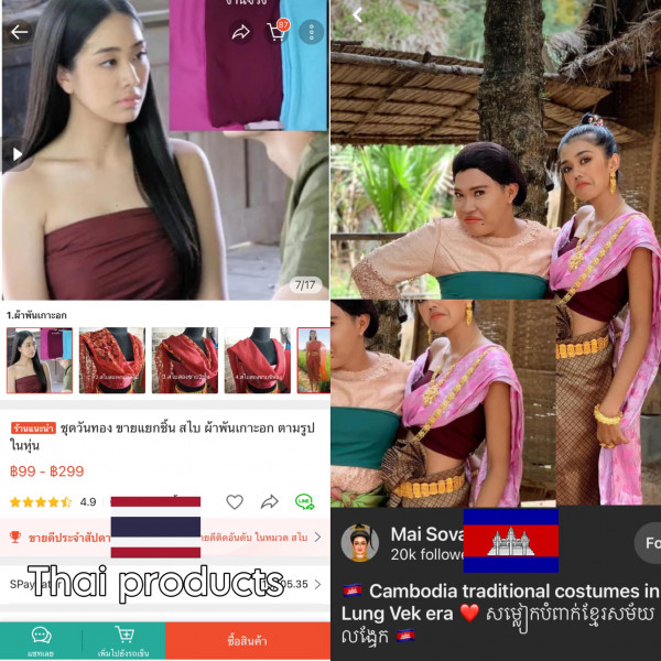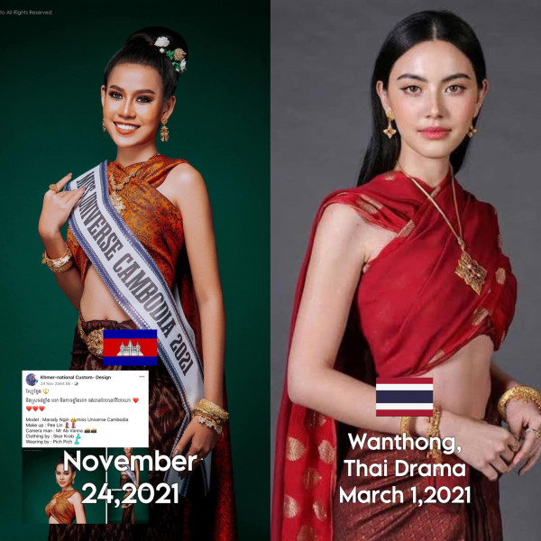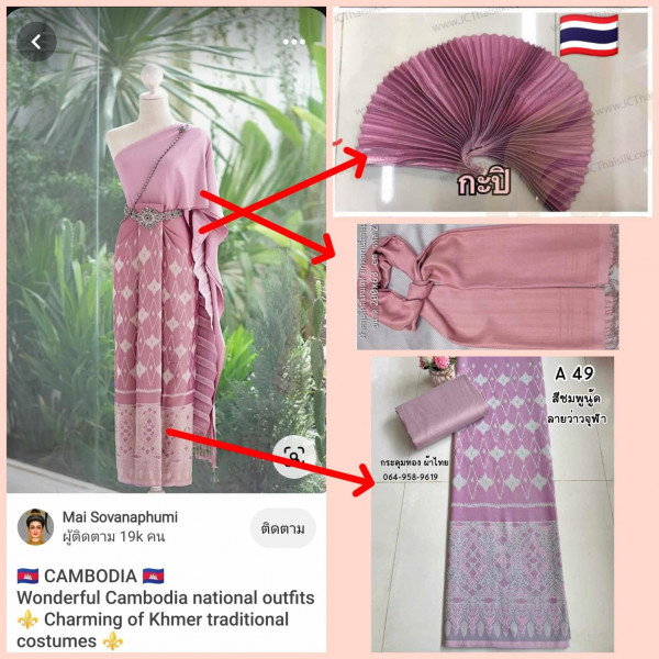 ก่อนที่จะนำมาอ้างว่าเป็น เสื้อดั้งเดิมของเขมร โพสต์ตามต่างๆ อย่างไม่สนกฎหมาย ลิขสิทธิ์ พร้อมทั้งอ้างความเป็นเจ้าของของตัวเองด้วยการแปะว่า Ancient Khmer dresses หรือ Cambodian Tradition dresses เพื่อให้คนต่างชาติเข้าใจผิด