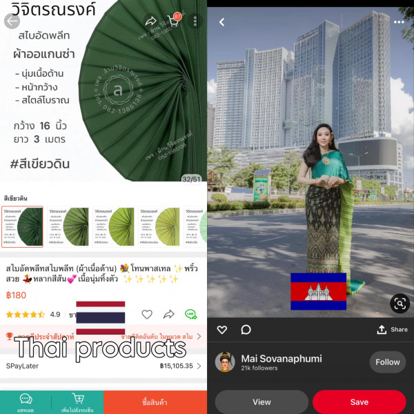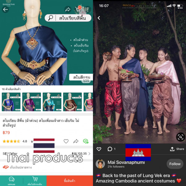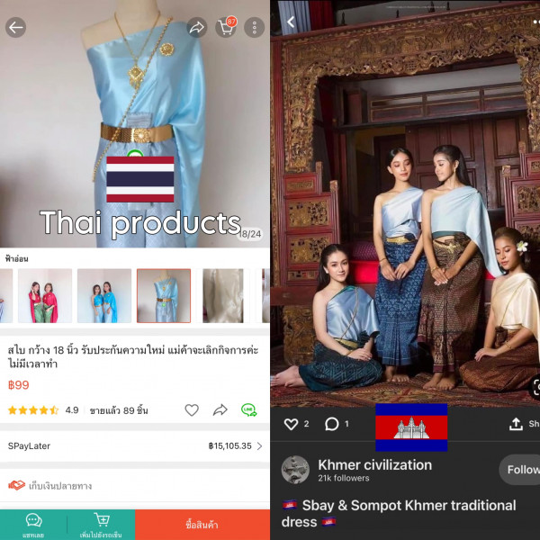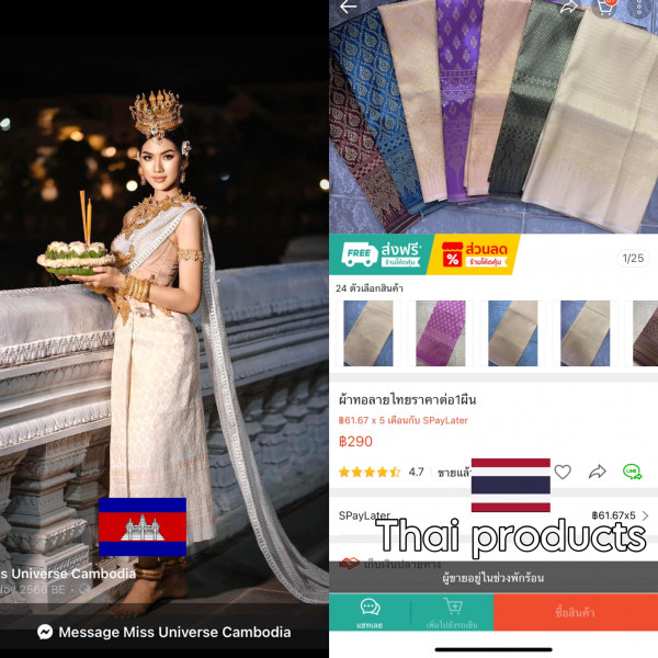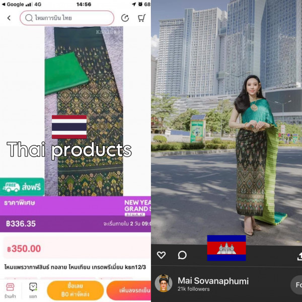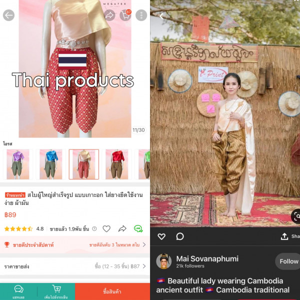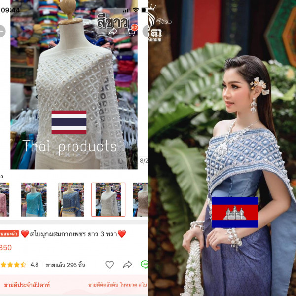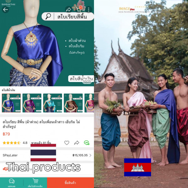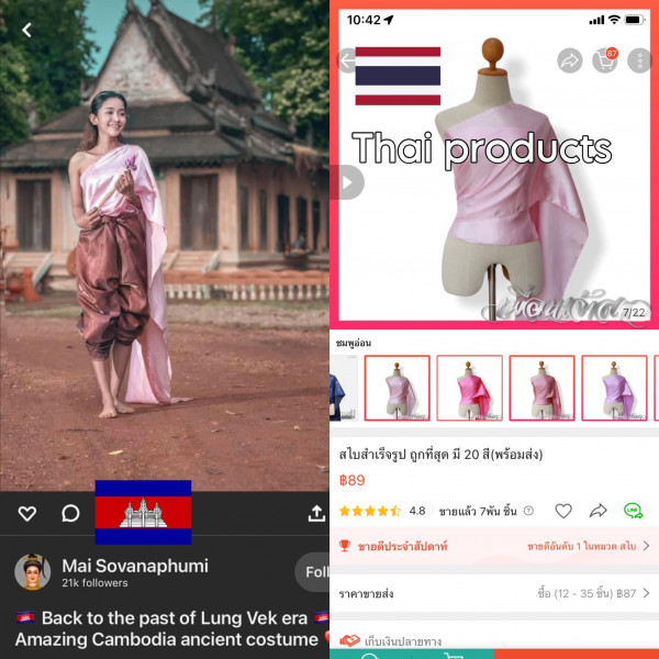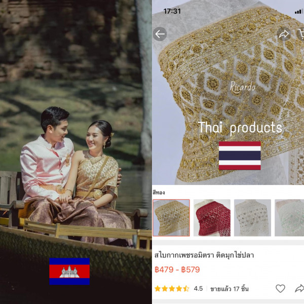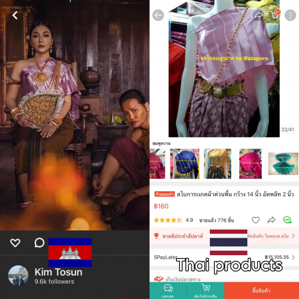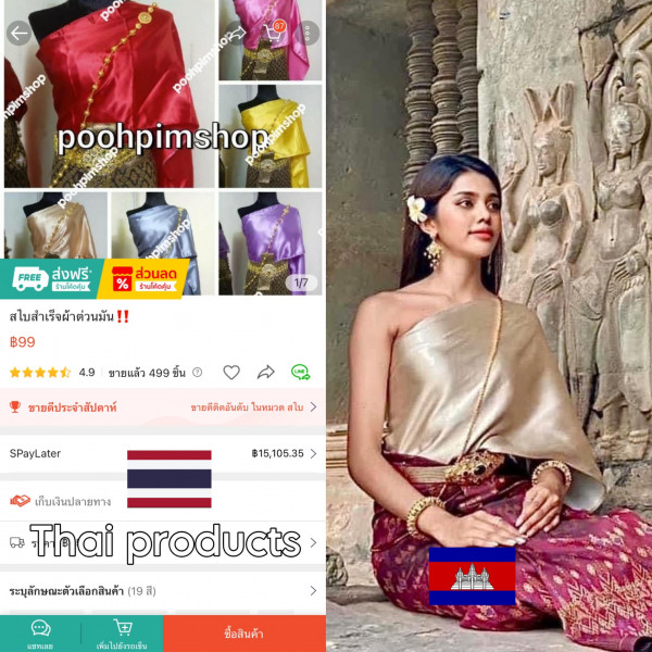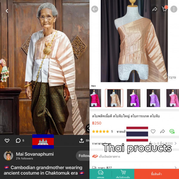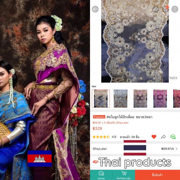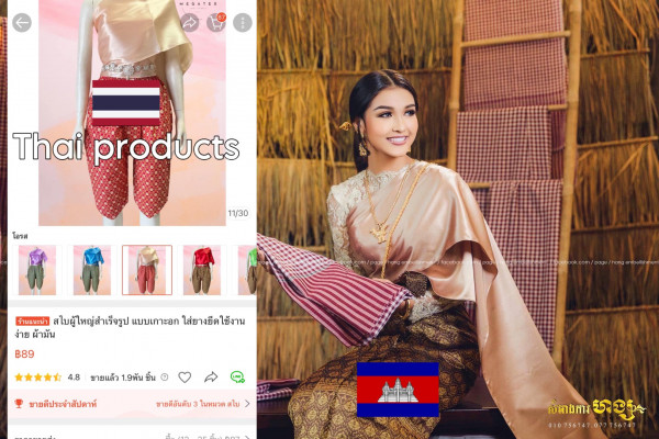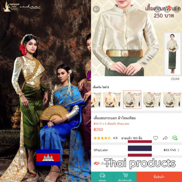 บันทึกการคัดลอกเสื้อผ้าไทยโดยหรือซื้อเสื้อผ้ามาจากไทยโดย ดีไซน์เนอร์เขมร